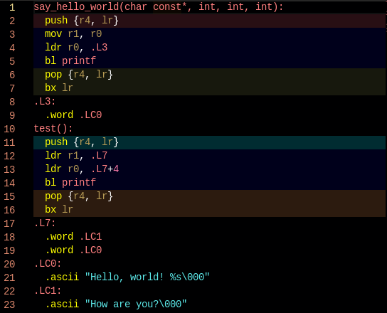 After compilation the compiler will have wrapped global variable accesses in an indirect lookup through the GOT. How does it find that table? Good question, enter another compiler flag: -msingle-pic-base. This, I believe, is ARM specific and tells the compiler to dedicate a specific register to holding the location of the GOT. In the default case this is R9.