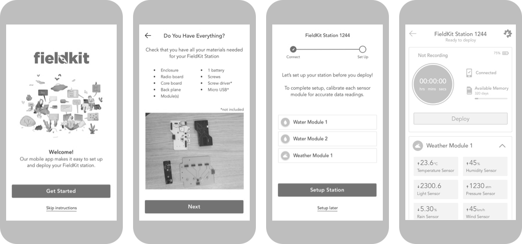- The FieldKit experience is a new paradigm for people who don’t have experience collecting environmental sensor data. The FieldKit experience and terms like “deployment”, “configuration” and “calibration” are not intuitive. The app needed more education and guidance for first time users