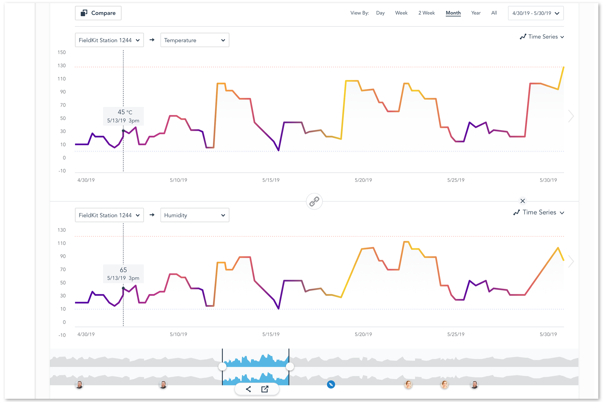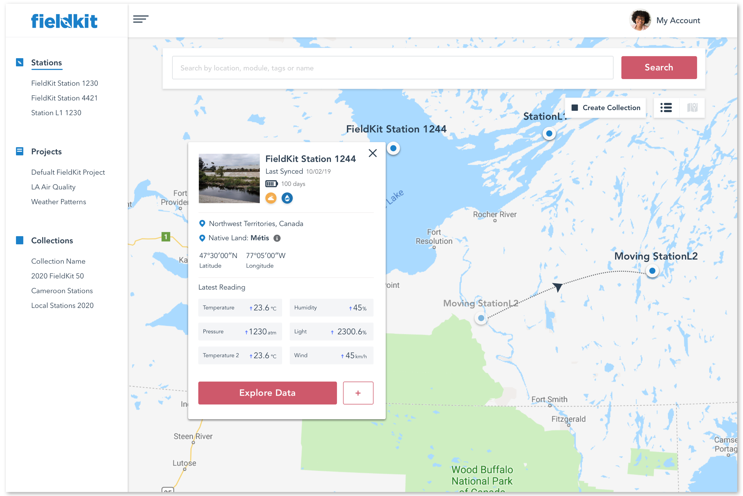 Una vez que la estación esté instalada y los datos estén sincronizados tanto con la aplicación FieldKit como con el portal web de FieldKit, podrás interactuar fácilmente con los datos.
