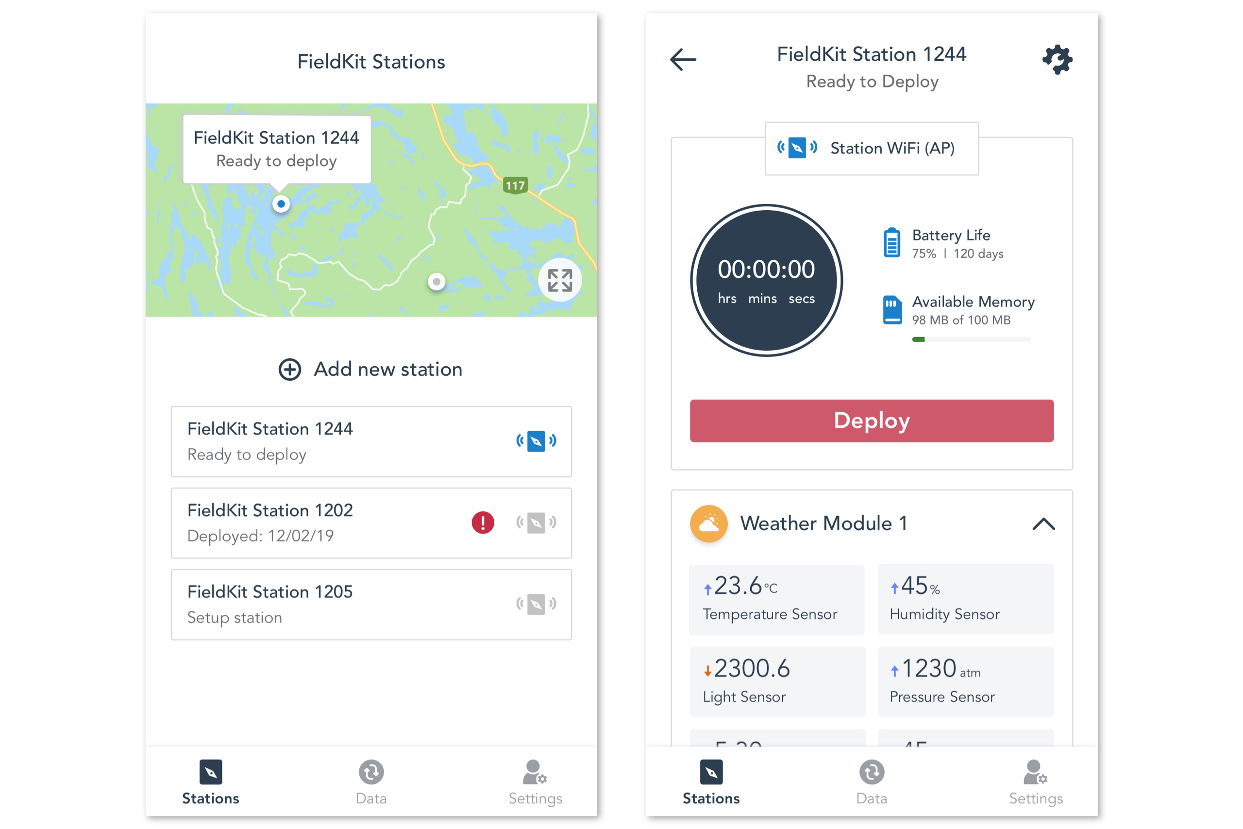 Administra tus estaciones y configura la estación a través de la aplicación. Instala tu estación y documenta el proceso con fotos y notas de campo para asegurarte de que estás recogiendo los mejores datos.